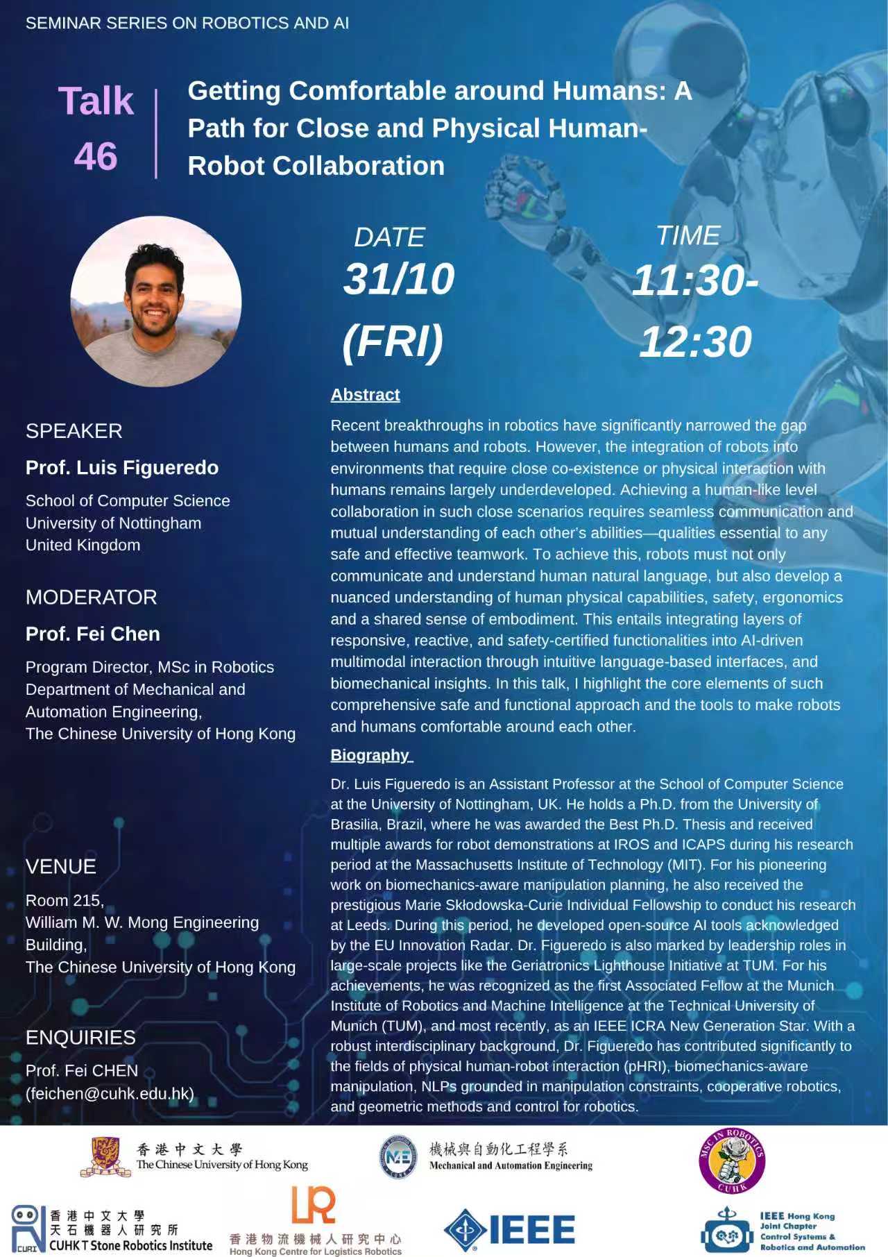 Speakers: Prof. Yunhui LIU, Prof. Masayoshi TOMIZUKA, Prof. Pieter ABBEEL, Dr. Zihao WANG, Dr. Mu FANG, Prof. Wei-Hsin LIAO, Prof. Benmei CHEN, Prof. Hannah STUART, Prof. Koushil SREENATH, Prof. Mark MUELLER, Prof. Qi DOU, Prof. Fei CHEN, Prof. Chun CHEN, Prof. Xi CHEN, Dr.Xiaojie GAO